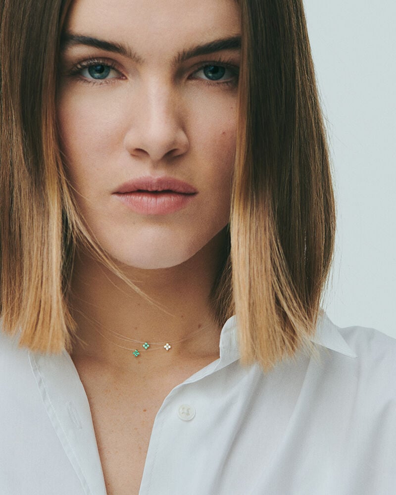 Un collier ras de cou se distingue par sa longueur, généralement entre 35 et 40 cm, qui lui permet de se positionner juste sous la base du cou, épousant parfaitement sa forme. Cette proximité avec la peau crée une allure élégante et subtile.