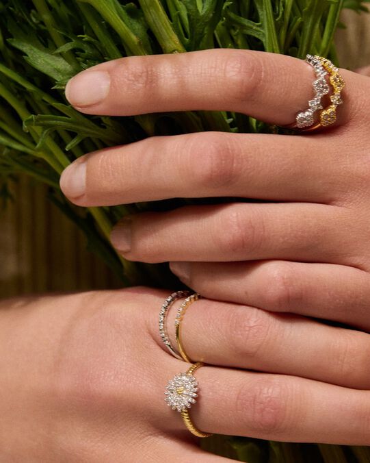 Quelques astuces : préférez une bague fine si vous avez de longs doigts. Les bagues larges conviennent à merveille aux mains plus pulpeuses. Envie d’un effet mode ? Accumulez plusieurs bagues fantaisie sur une même main. Attention toutefois à l’équilibre : une main chargée de bijoux appelle à plus de sobriété côté accessoires.