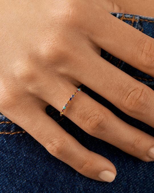 Bague fine RAINBOW - Multicolore / Doré - Bagues avec pierre  | Agatha