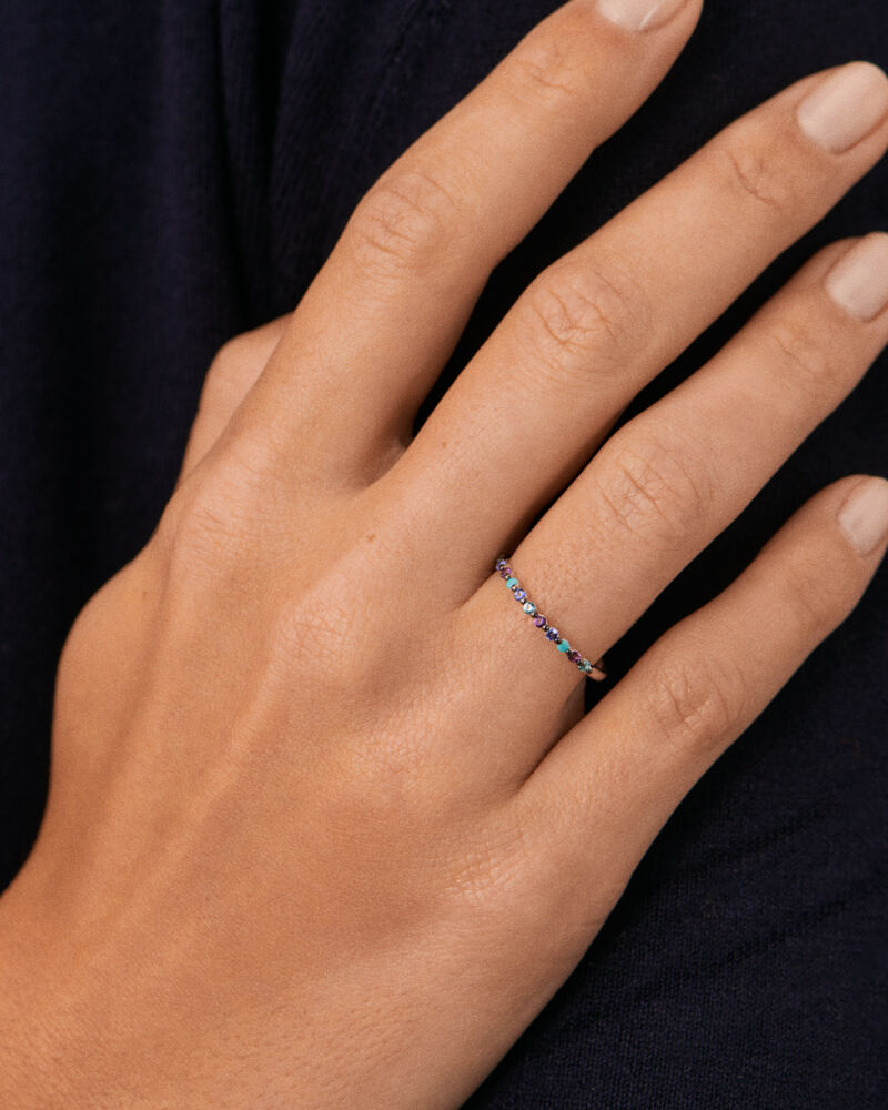 Bague fine BELOVED - Multicolore / Argenté - Bagues avec pierre  | Agatha