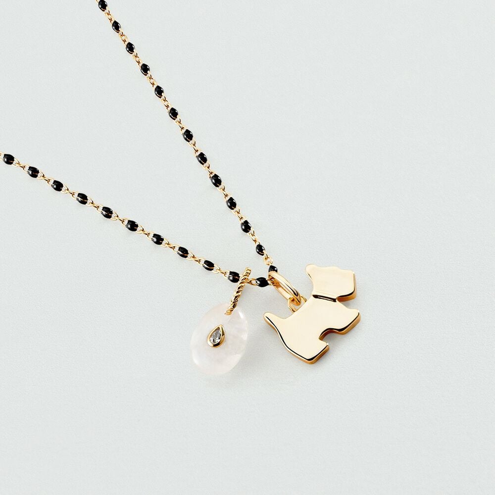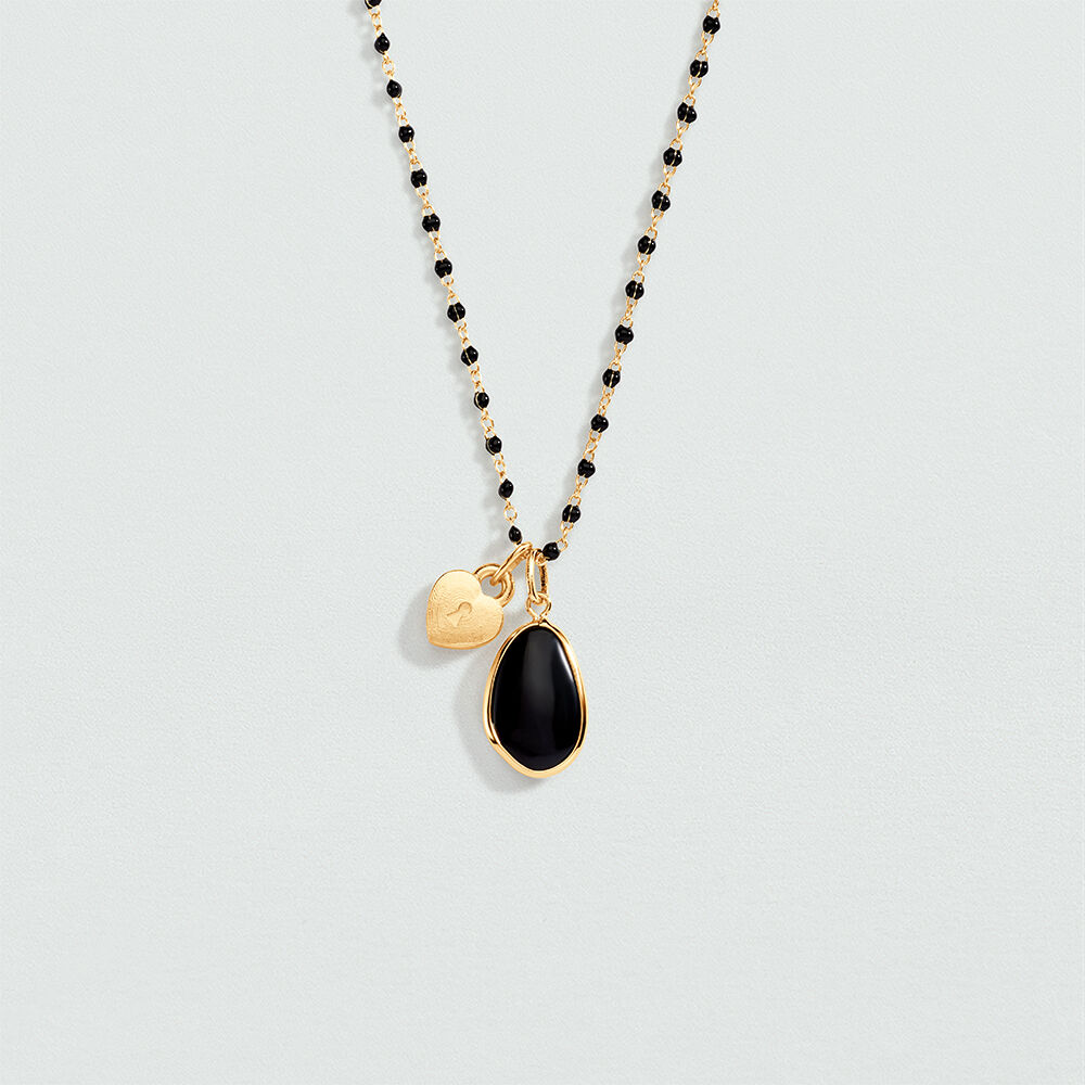 Collier court, en laiton doré 750/1000, perles d'émail sur toute la longueur. Ce bijou mesure 375mm et contient une rallonge de 50mm