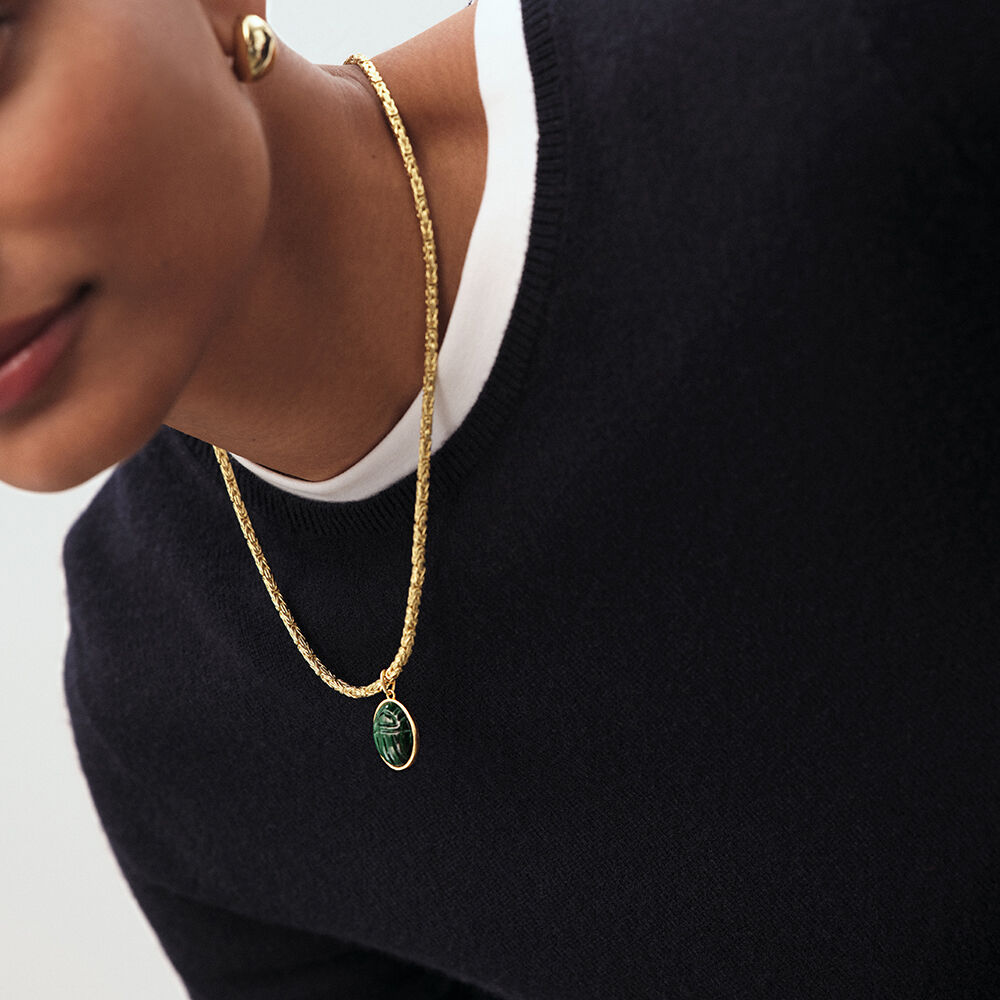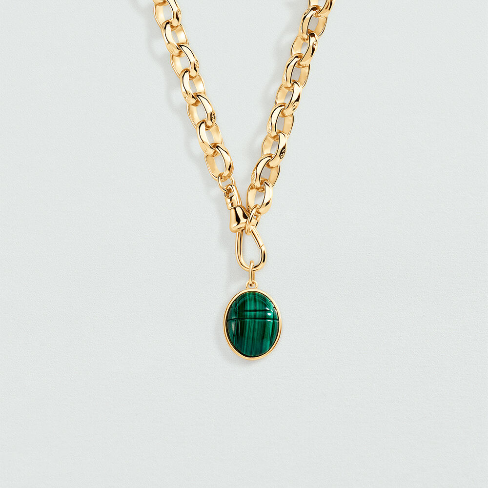 Pendentif SCARABÉ MALACHITE - Vert / Doré - Autres pierres  | Agatha