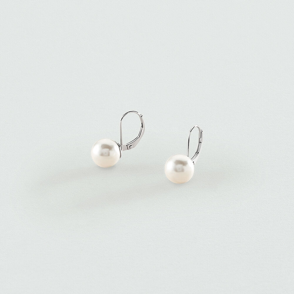 Boucles d'oreilles pendantes PERLYS - Perle / Argenté - Boucles d'oreilles dormeuses  | Agatha