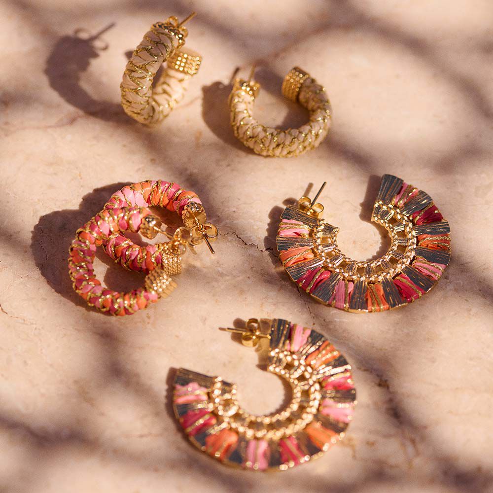 Créoles RAFIA - Beige / Doré - Boucles d'oreilles fantaisies  | Agatha