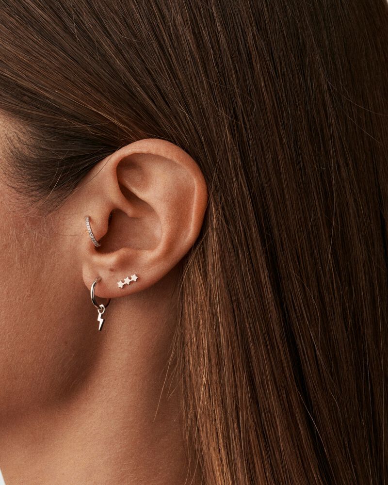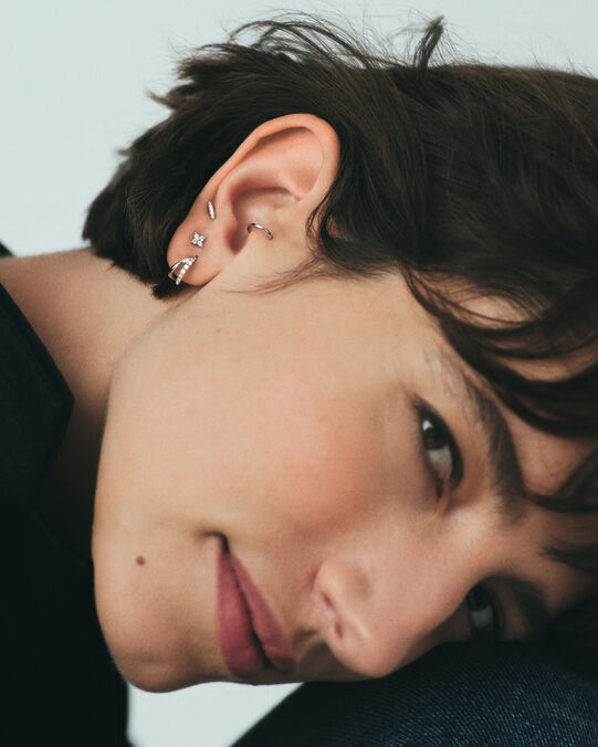Les ear cuffs, quant à eux, apportent une touche rock et tendance à votre composition. Ils se marient parfaitement avec des boucles d’oreilles pendantes en argent et des piercings tragus ou helix, créant ainsi un look structuré et moderne.
