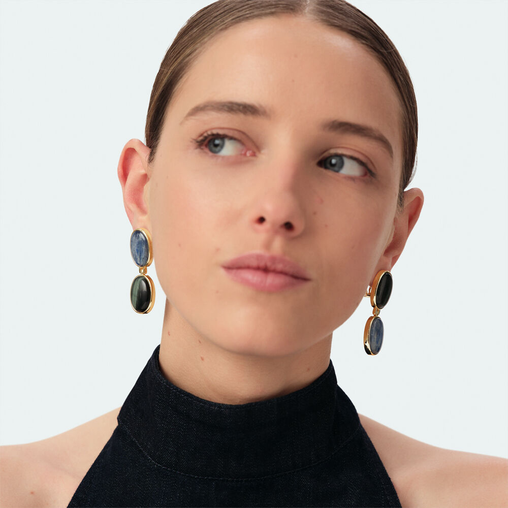 Boucles d'oreilles pendantes LA RIVIERA - Bleu / Doré - Boucles d'oreilles pendantes  | Agatha