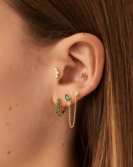 Vert émeraude intense comme un sous-bois mystérieux. Vert jade apaisant, messager de sérénité. Vert d’eau translucide, souvenir d’une mer calme. Chaque paire de boucles d'oreilles vertes révèle une facette de cette couleur vibrante. Fines gouttes de cristal, pampilles légères, pierres facettées ou délicats émaux… à chaque bijou son histoire, à chaque femme son vert idéal.