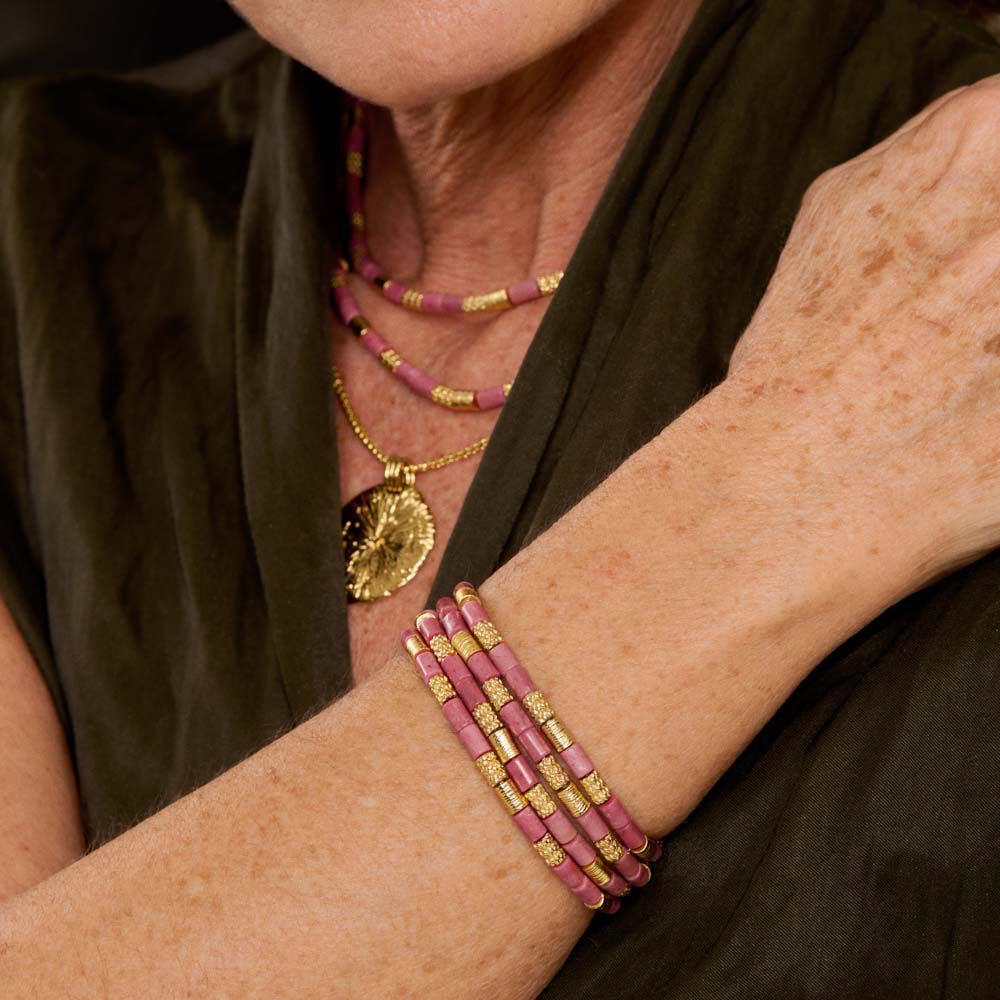 Bracelet souple PETRA - Rhodochrosite / doré - Bracelets fantaisie  | Agatha