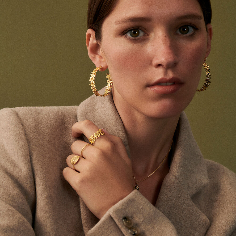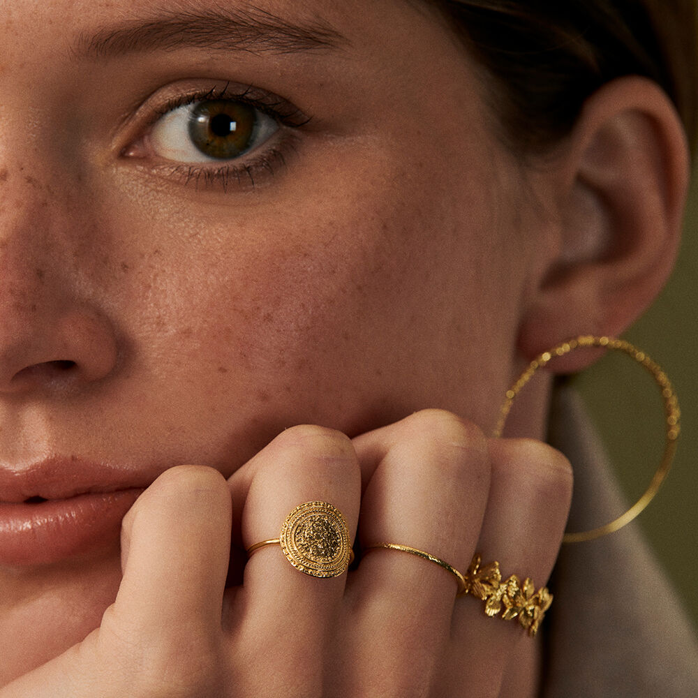 Bague fine, en laiton doré 750/1000, médaille texturée .