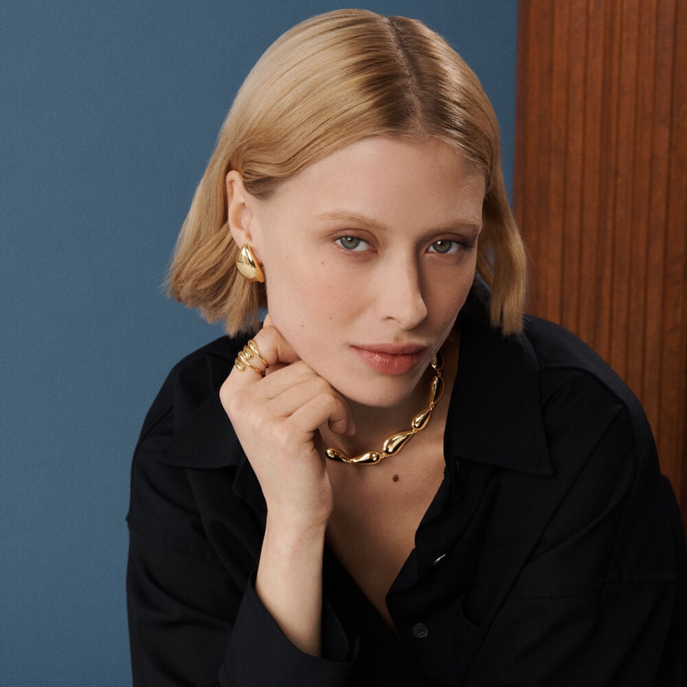 Bague fine en laiton doré à l'or 750/1000 représentant deux gouttes qui s'enlacent.