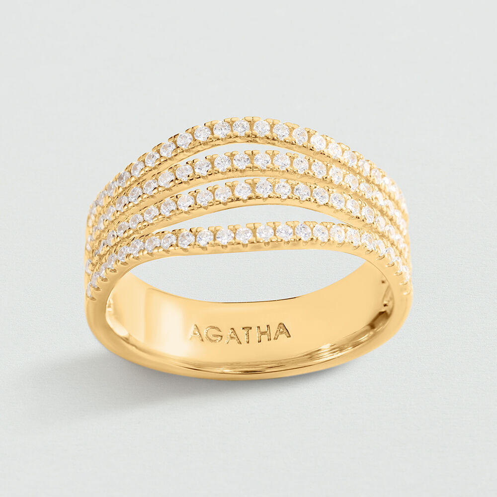 Cette bague de notre collection DAUPHINE, imaginée à Paris, est réalisée en argent 925 doré et ornée d'oxydes de zirconium.Son design, rythmé par des variations organiques, lui insuffle un mouvement naturel et une fluidité harmonieuse.