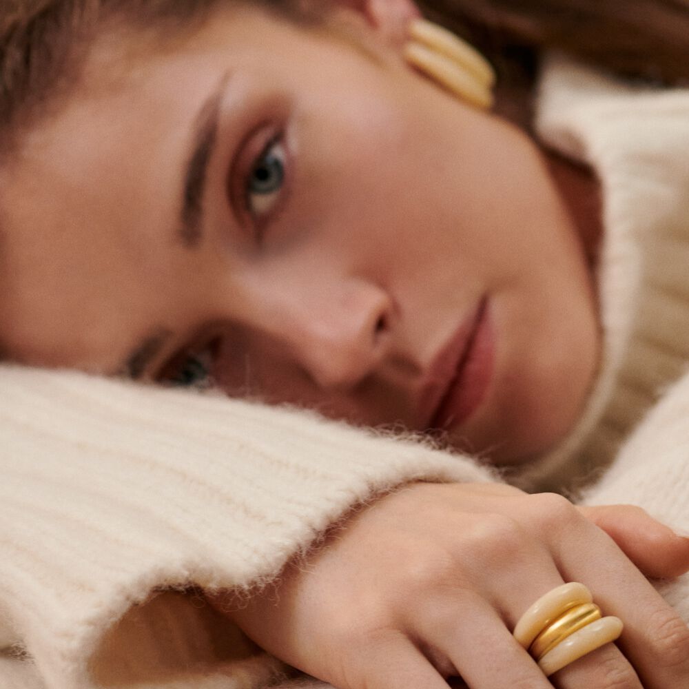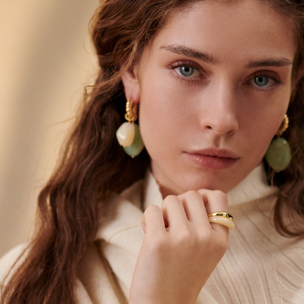 Bague fine, anneau en résine bombé sur une base en laiton doré 750/1000.
