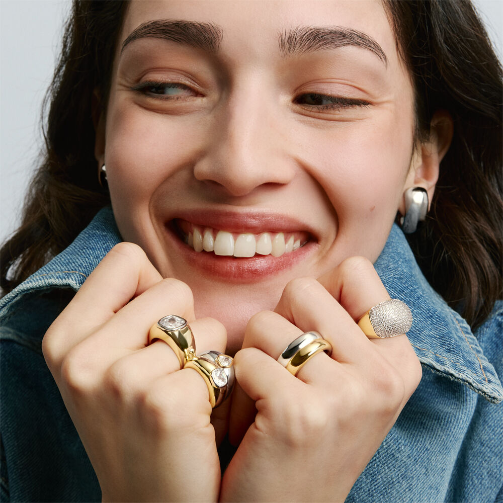 Cette bague de notre collection VICTOIRE, imaginée à Paris, est réalisée en laiton argenté rhodié et ornée d'un oxyde de zirconium.Avec son porté sur le petit doigt, elle peut s'accumuler avec les autres bagues de notre collection VICTOIRE.