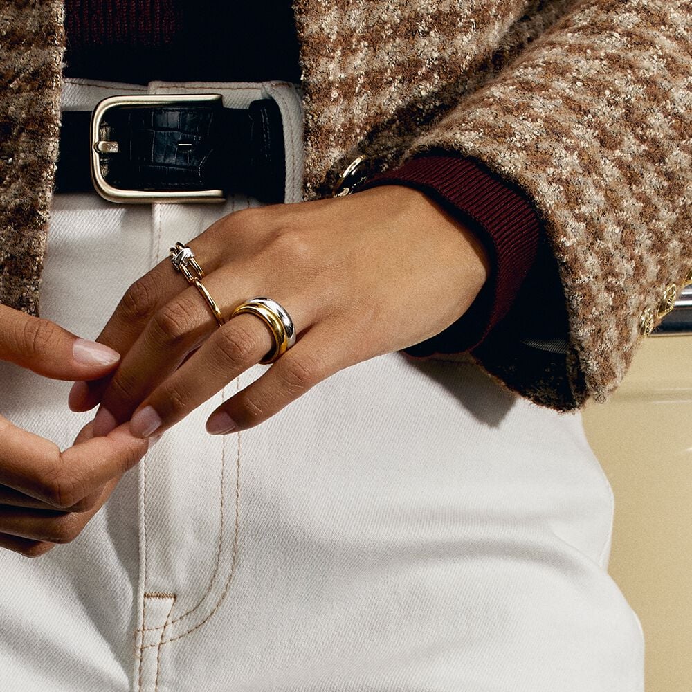 Bague en argent 925/1000 doré à l'or 750/1000 avec de petite croix en argent 925/1000 rhodié.