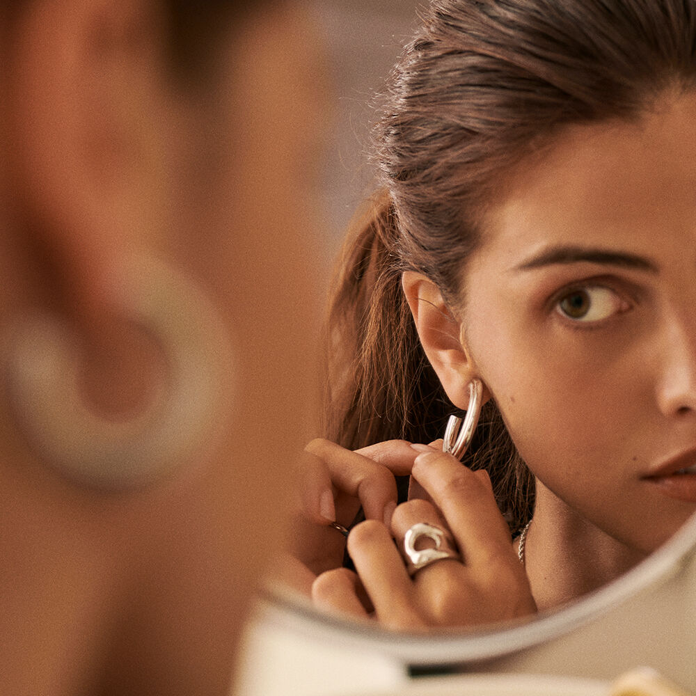 Bague large en argent véritable formée de deux fils arrondis superposés.