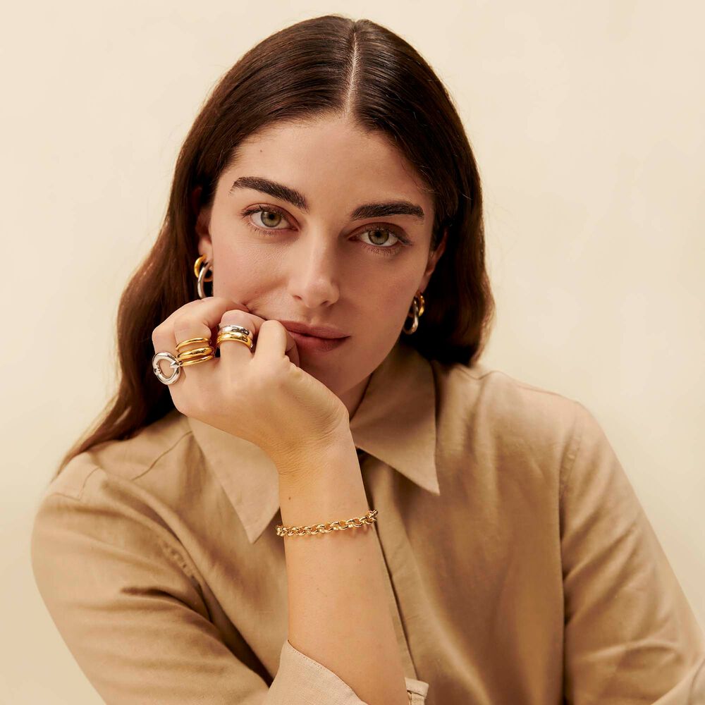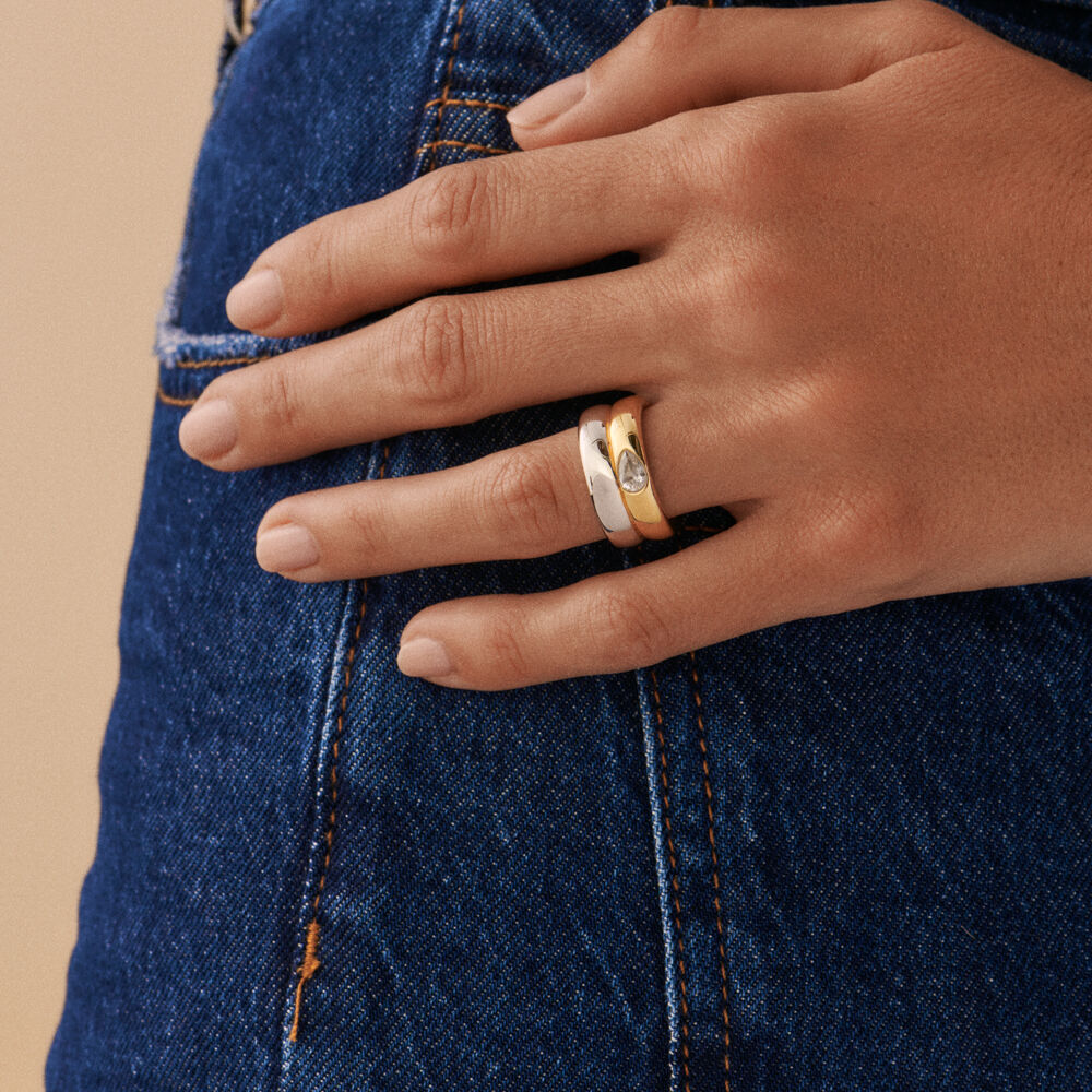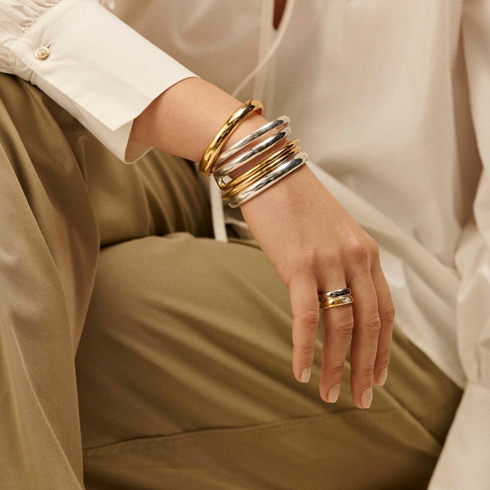 Deux joncs, en argent véritable et argent véritable doré 750/1000, dont l'un avec un oxyde de zirconium serti dans le corps de bague.