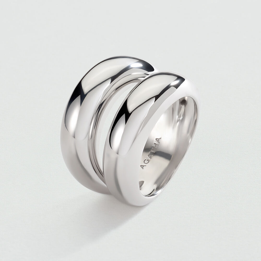Cette bague double de notre collection RUE DE SEINE, imaginée à Paris, est réalisée en Argent 925. Elle mêle volumes généreux et détails contrastés pour une élégance épurée au caractère affirmé.