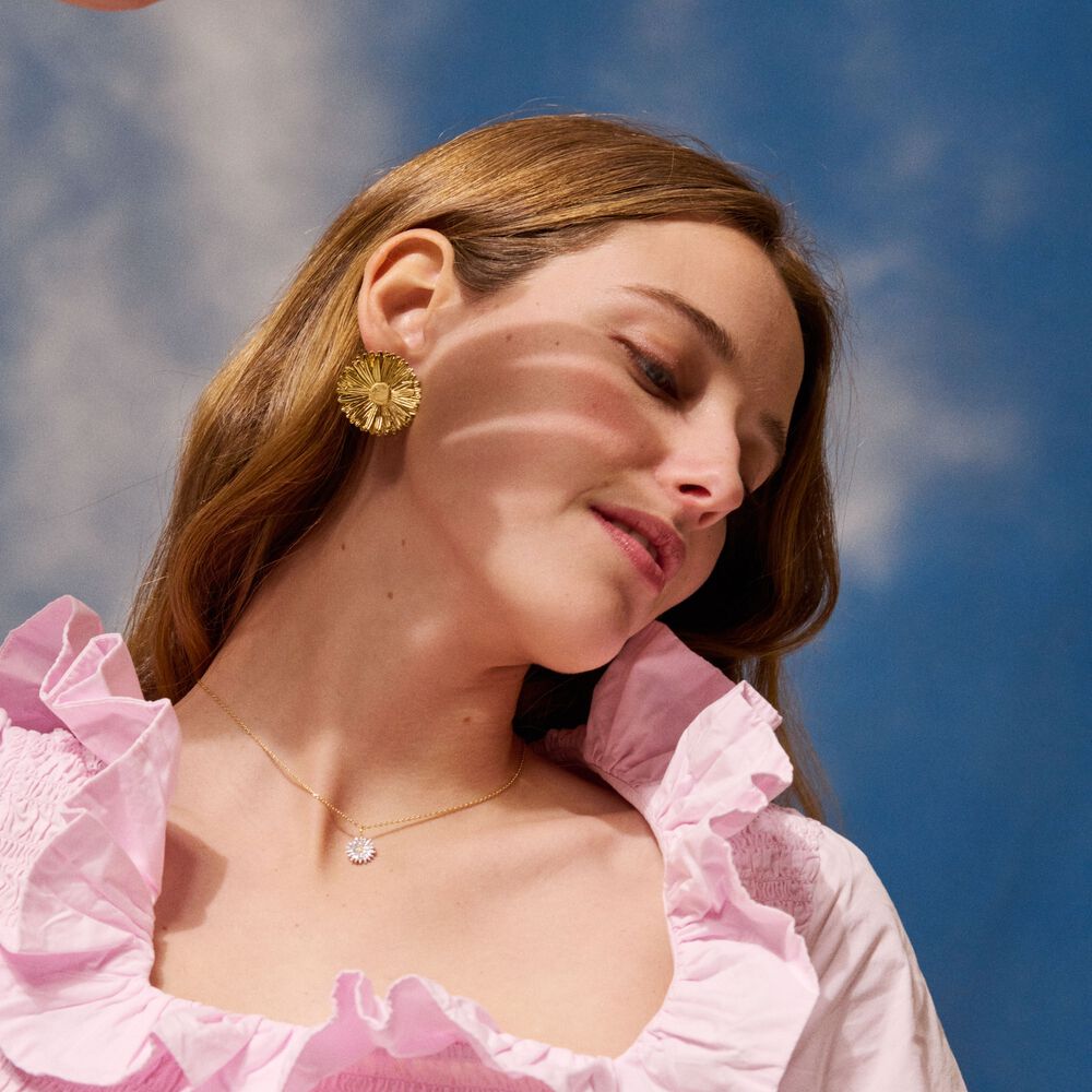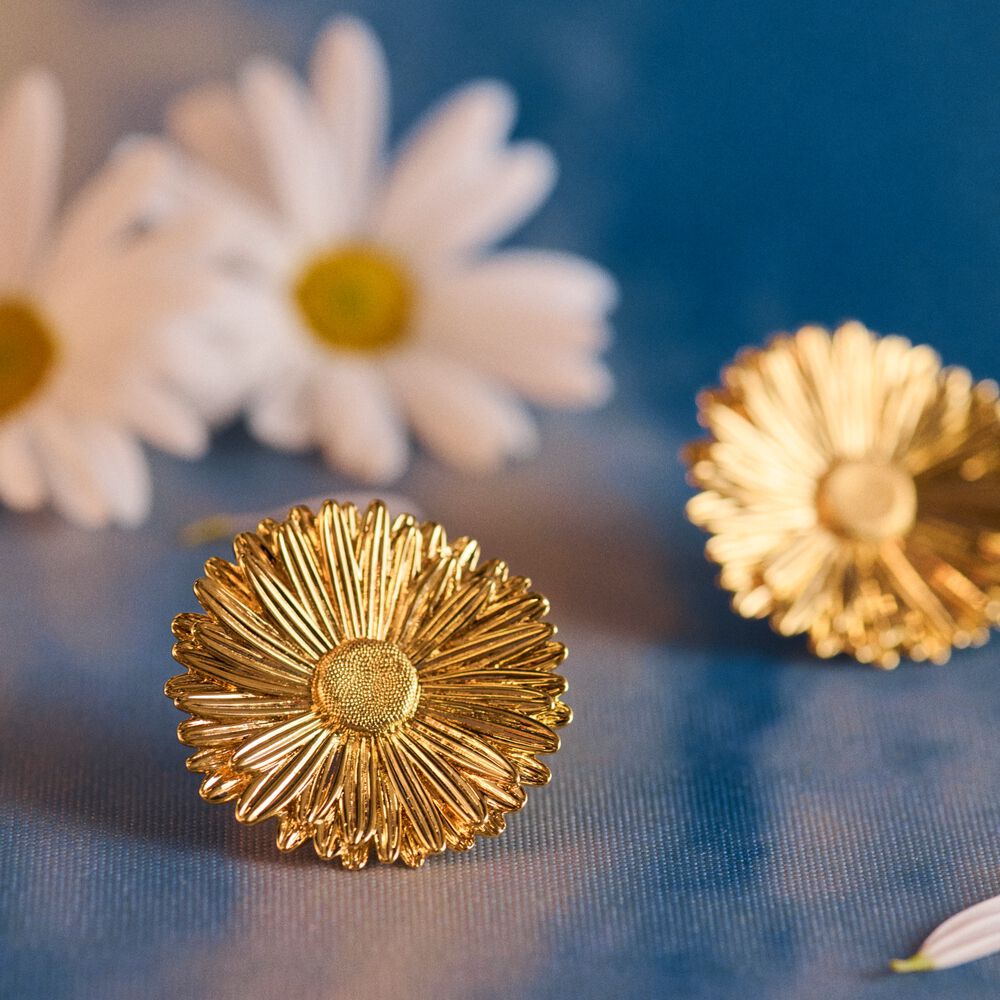 Boucles d'oreilles orbitales en laiton doré à l'or 750/1000 en forme de fleurs printanières.