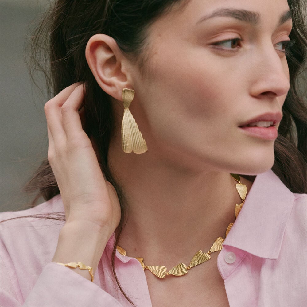 Boucles d'oreilles doubles de notre collection CASSIS, imaginées à Paris, réalisées en laiton doré à l'or 750/1000e - 18 carats.