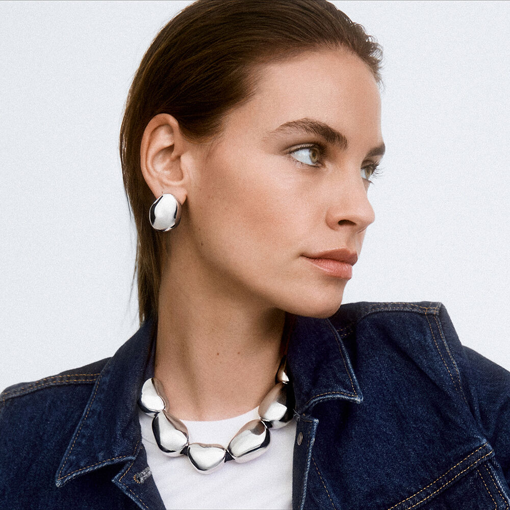 Boucles d'oreilles galets de notre collection ODYSSÉE, imaginées à Paris, réalisées en laiton argenté rhodié.