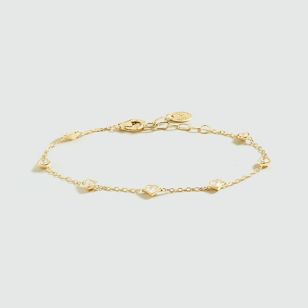 Bracelet en argent 925/1000 doré à l'or 750/1000serti d'une multitude d'oxydes de zirconium en forme de cœur .