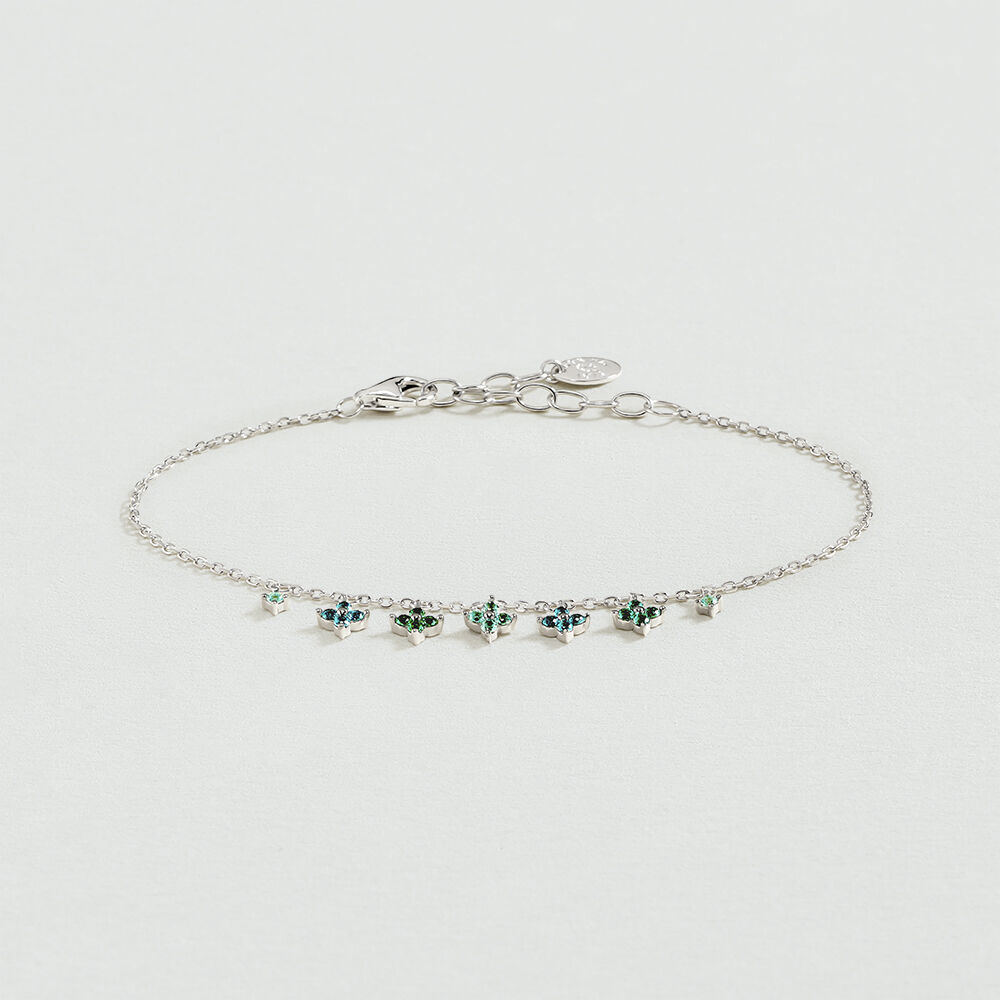 Bracelet en argent 925/1000 montée d'une rangée de fleurs pavées d'oxydes de zirconium.