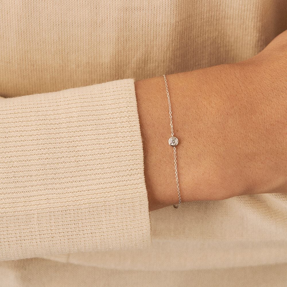 Bracelet souple en argent véritable orné d'un oxyde de zirconium serti clos. Ce bijou mesure 150mm et contient une rallonge de 30mm