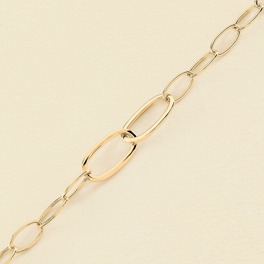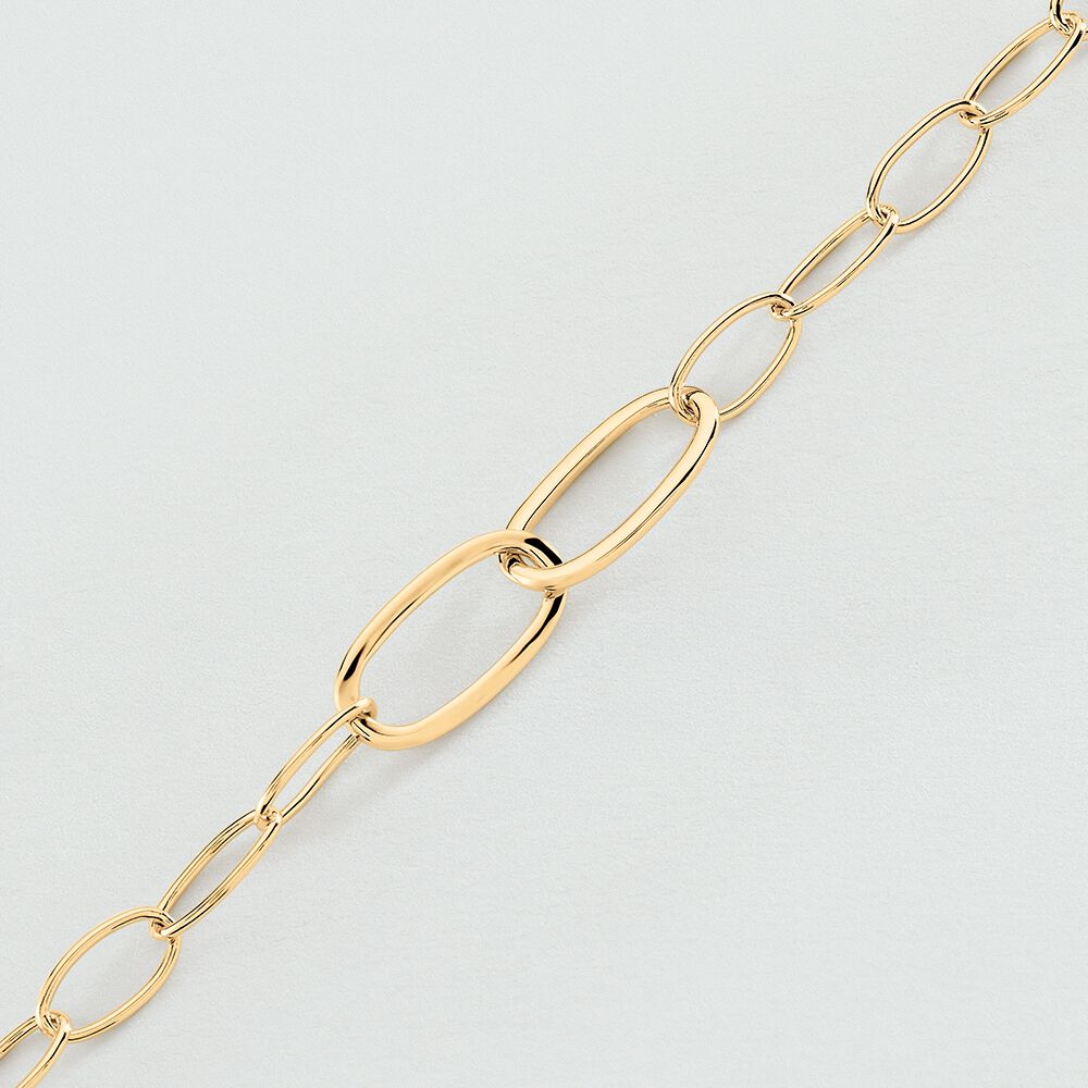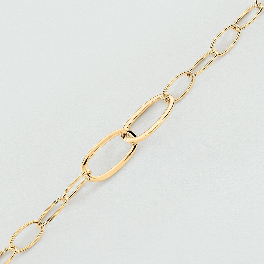 Bracelet chaine, en laiton rhodié, avec maillons ovales allongés dont deux XL au centre et notre fermoir T identitaire.