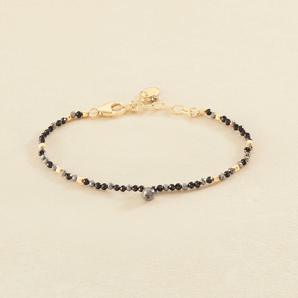 Bracelet, en argent doré 750/1000, pierres enfilées et goutte centrale.