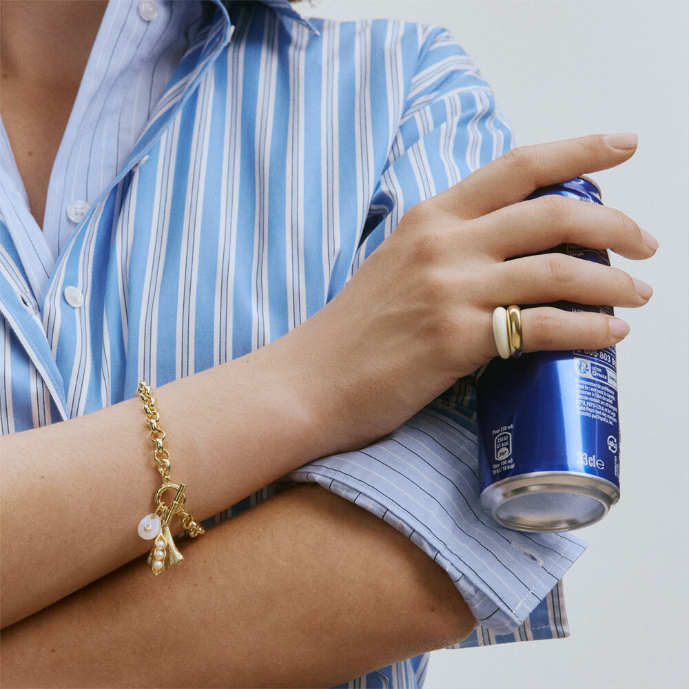 Bracelet chaine jaseron de notre collection GAMBETTA, imaginé à Paris, réalisé en laiton doré à l'or 750/1000e - 18 carats. Personnalisez votre bijou et changez-le au gré de vos envies en ajoutant à votre base chaîne un ou plusieurs pendentifs charms de notre collection Talismans.