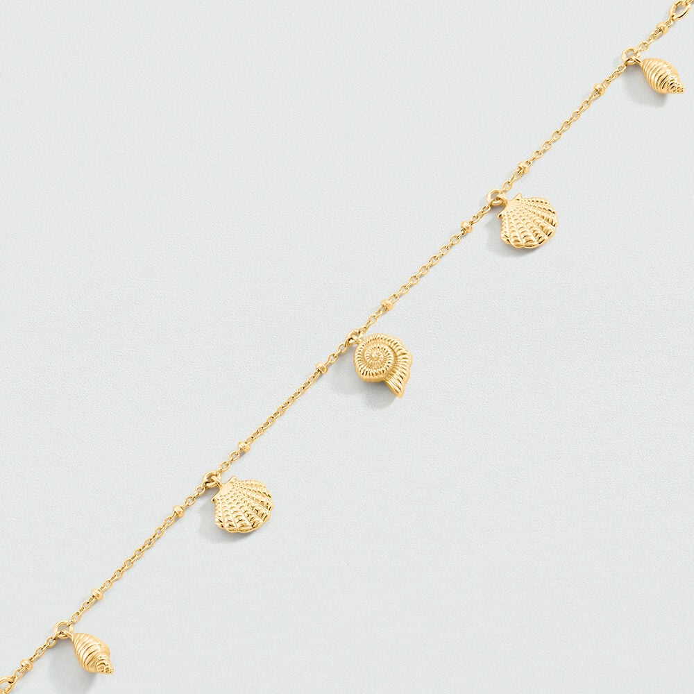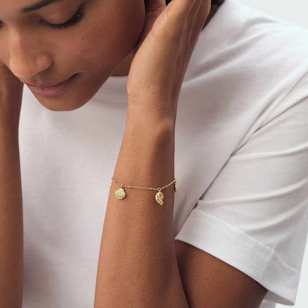 Bracelet, en laiton doré 750/1000, 5 petits coquillages en pampilles.