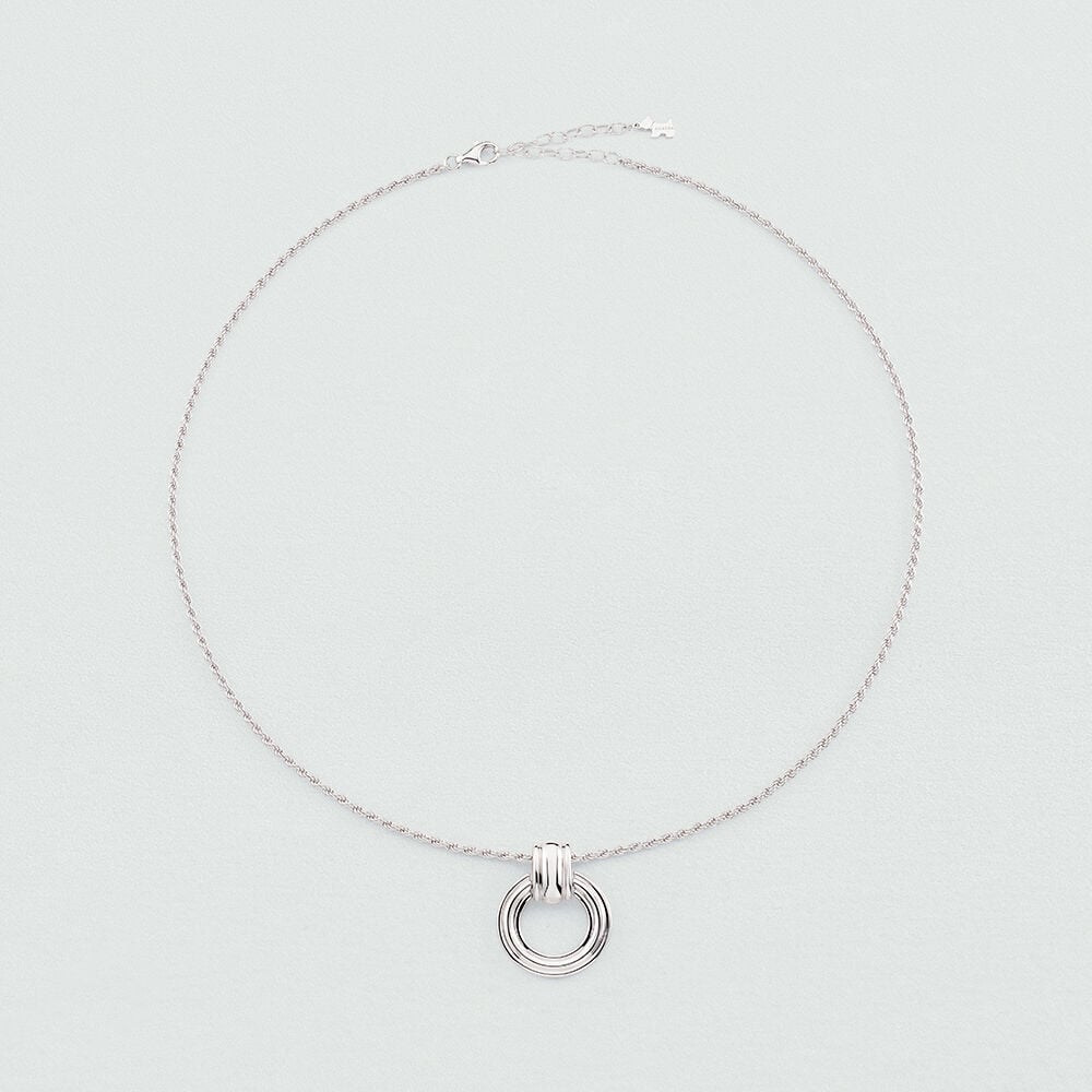 Collier en argent véritable fait d'une chaine jaseron épaisse ornée d'un pendentif au design arrondi. . Ce bijou mesure 450mm et contient une rallonge de 50mm