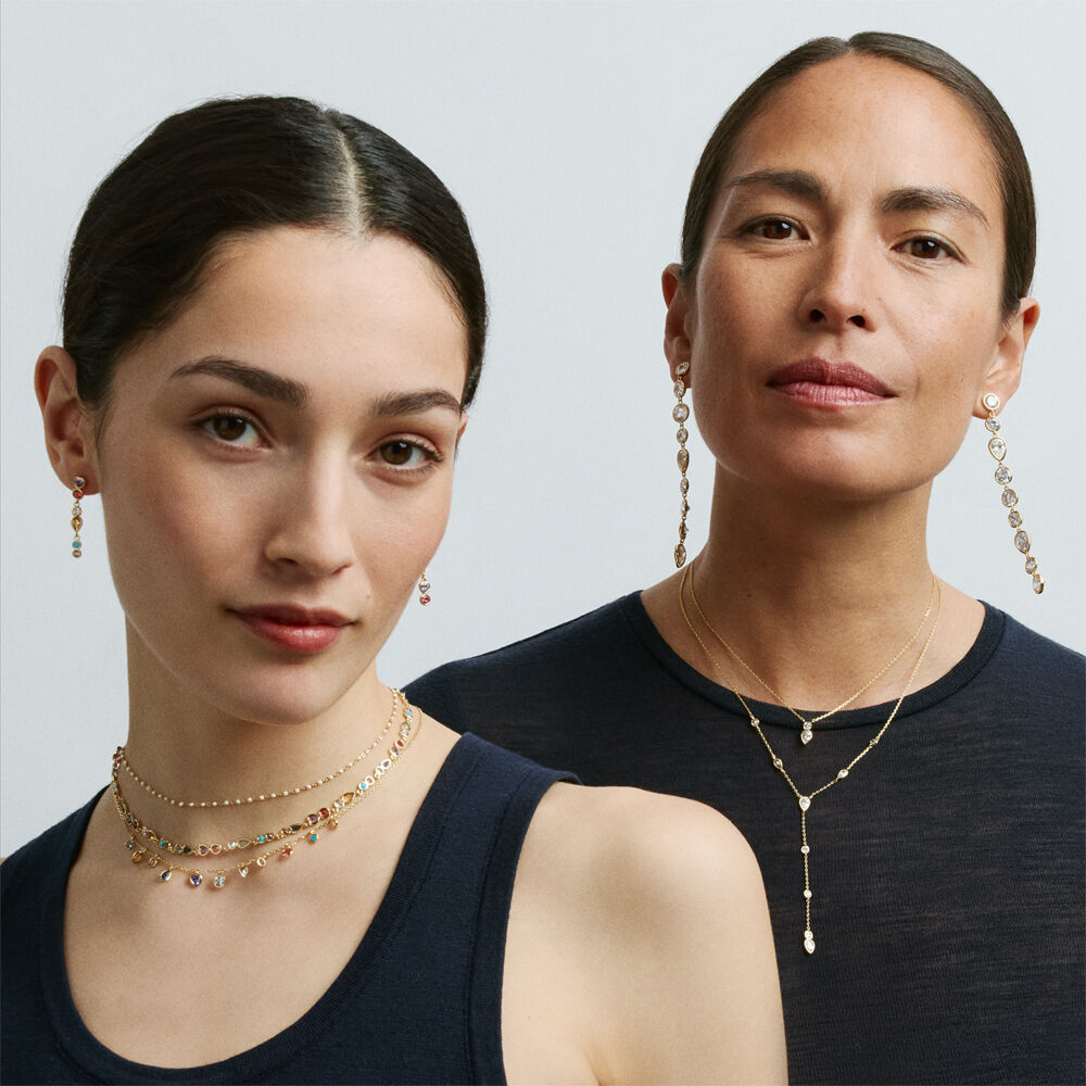 Ce collier Y de notre collection CANDY, imaginé à Paris, est réalisé en laiton doré à l'or 750/1000e et orné d'oxydes de zirconium.Avec son porté moderne et ses oxydes en forme de coussin et de goutte, ce collier permet un look chic tout en restant discret. Il peut être associé à d'autres bijoux de notre collection permanente CANDY. Ce bijou mesure 420 mm auquel s’ajoute une rallonge de 50 mm