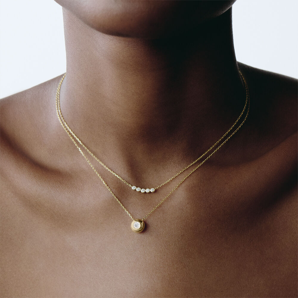 Collier de notre collection ODEON, imaginé à Paris, réalisé en argent 925 doré à l'or 750/1000e - 18 carats et orné d'un oxyde de zirconium XL en sertis clos. Cette collection au design épuré est inspirée des codes classiques de la joaillerie. Ce bijou mesure 375 mm auquel s’ajoute une rallonge de 50 mm