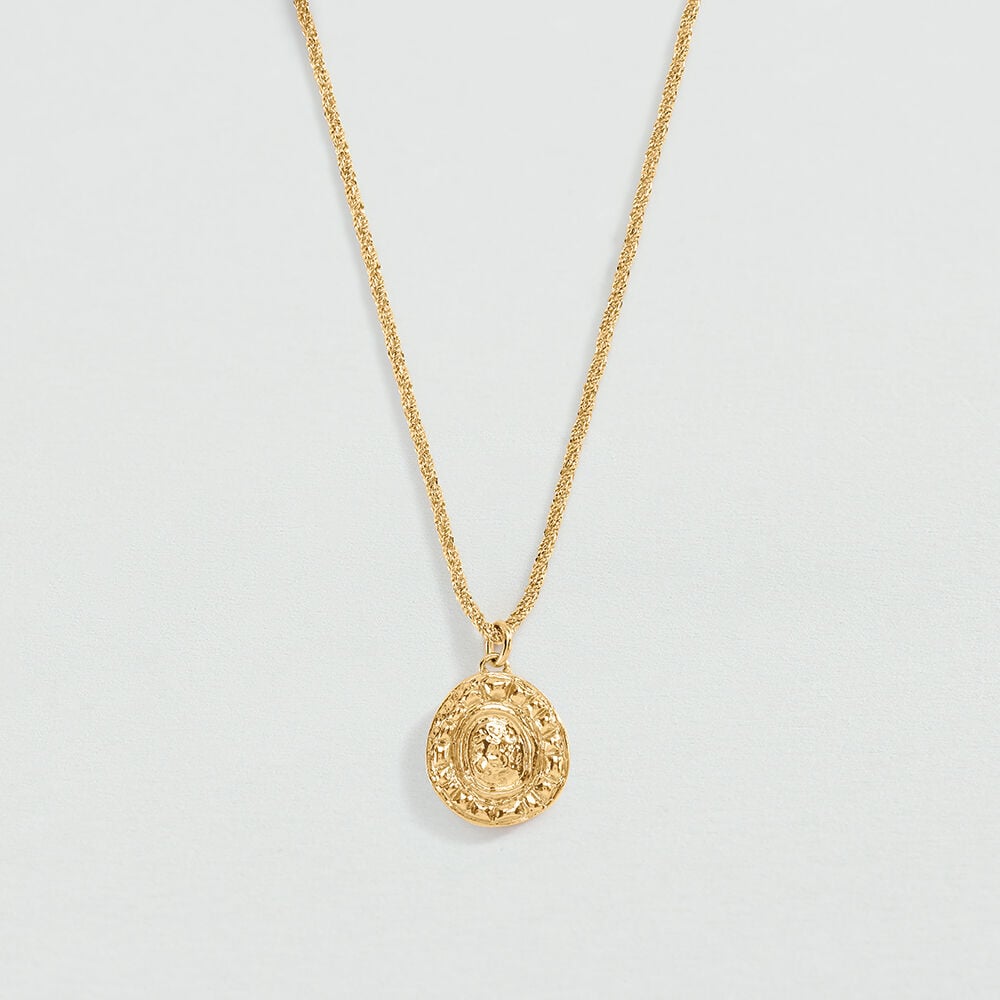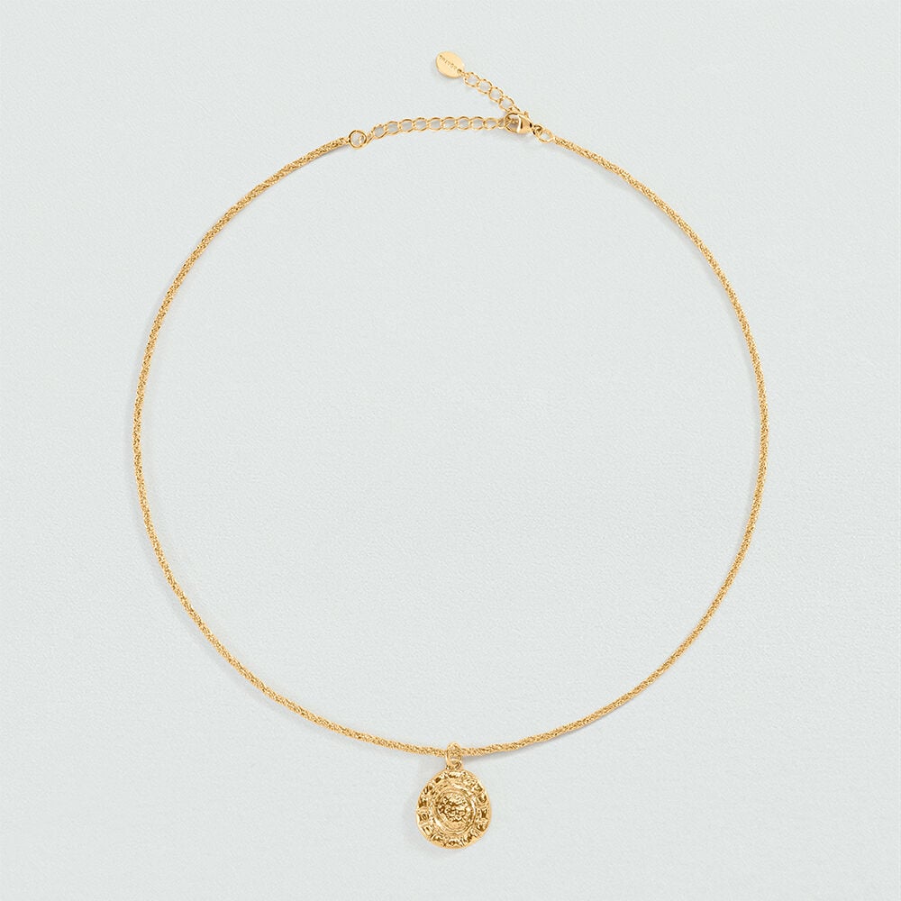 Collier en métal doré à l'or fin avec médaille texturée Ce bijou mesure 450mm et contient une rallonge de 50mm