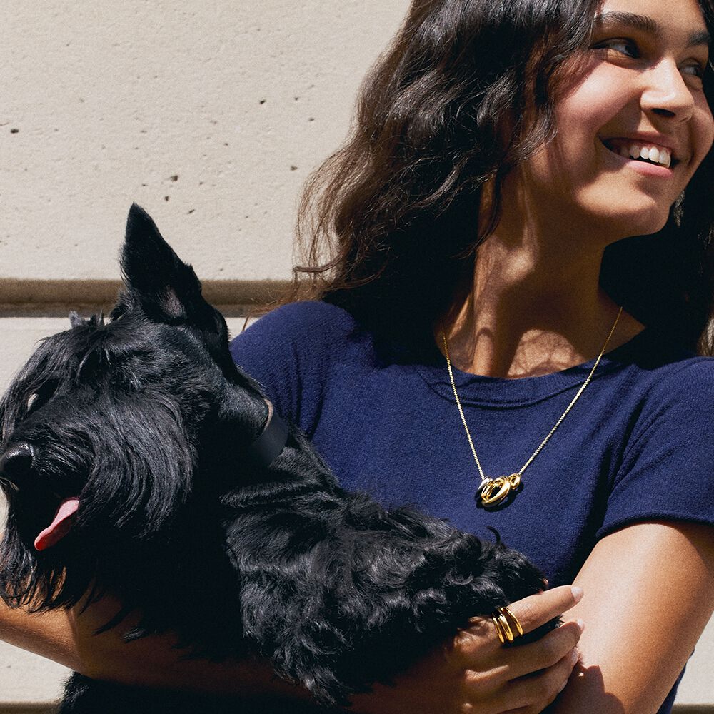 Collier triple anneaux en argent 925/1000 doré à l'or 750/1000 et rhodié. Ce collier possède de multiple portés en elevant et remettant à votre goût les anneaux de votre collier ! . Ce bijou mesure 550mm et contient une rallonge de 50mm