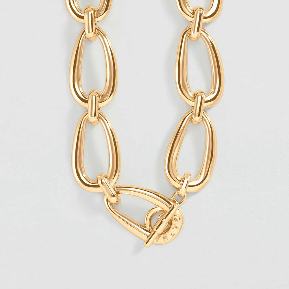 Ce collier de notre collection ABBESSES, imaginé à Paris, est réalisé en laiton doré à l’or 750/1000e – 18 carats.Inspirées par les derniers défilés, ces maillons XXL donneront une touche d’audace à vos looks.Possibilité d'acheter une rallonge sur notre site afin d'avoir un porté plus long autour du cou. Référence: 03880002-157-TU