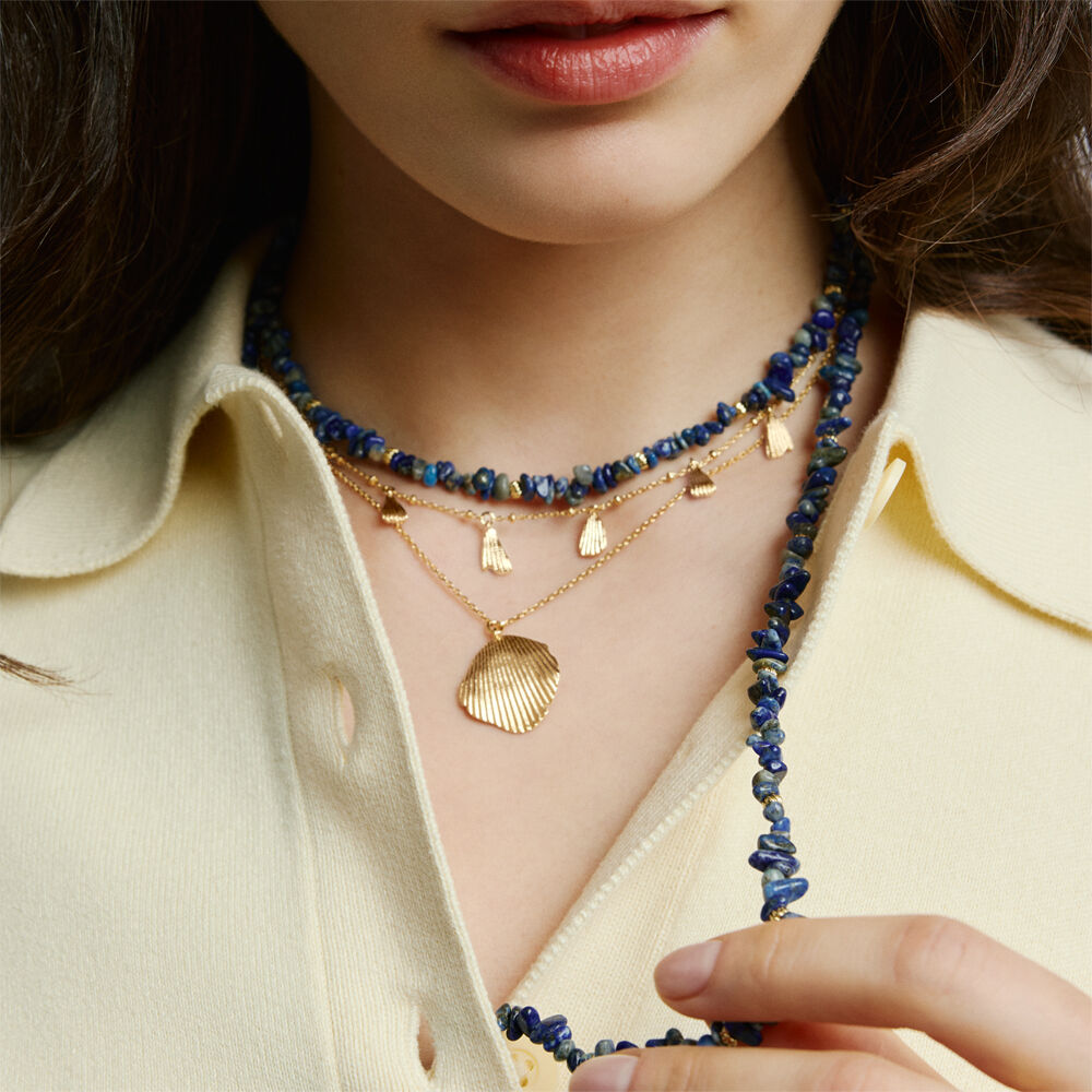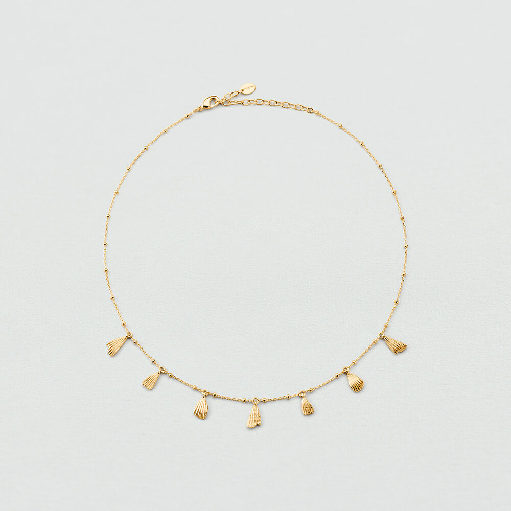Collier de notre collection CASSIS, imaginé à Paris, réalisé en laiton doré à l'or 750/1000e - 18 carats. Ce bijou mesure 375 mm auquel s’ajoute une rallonge de 50 mm