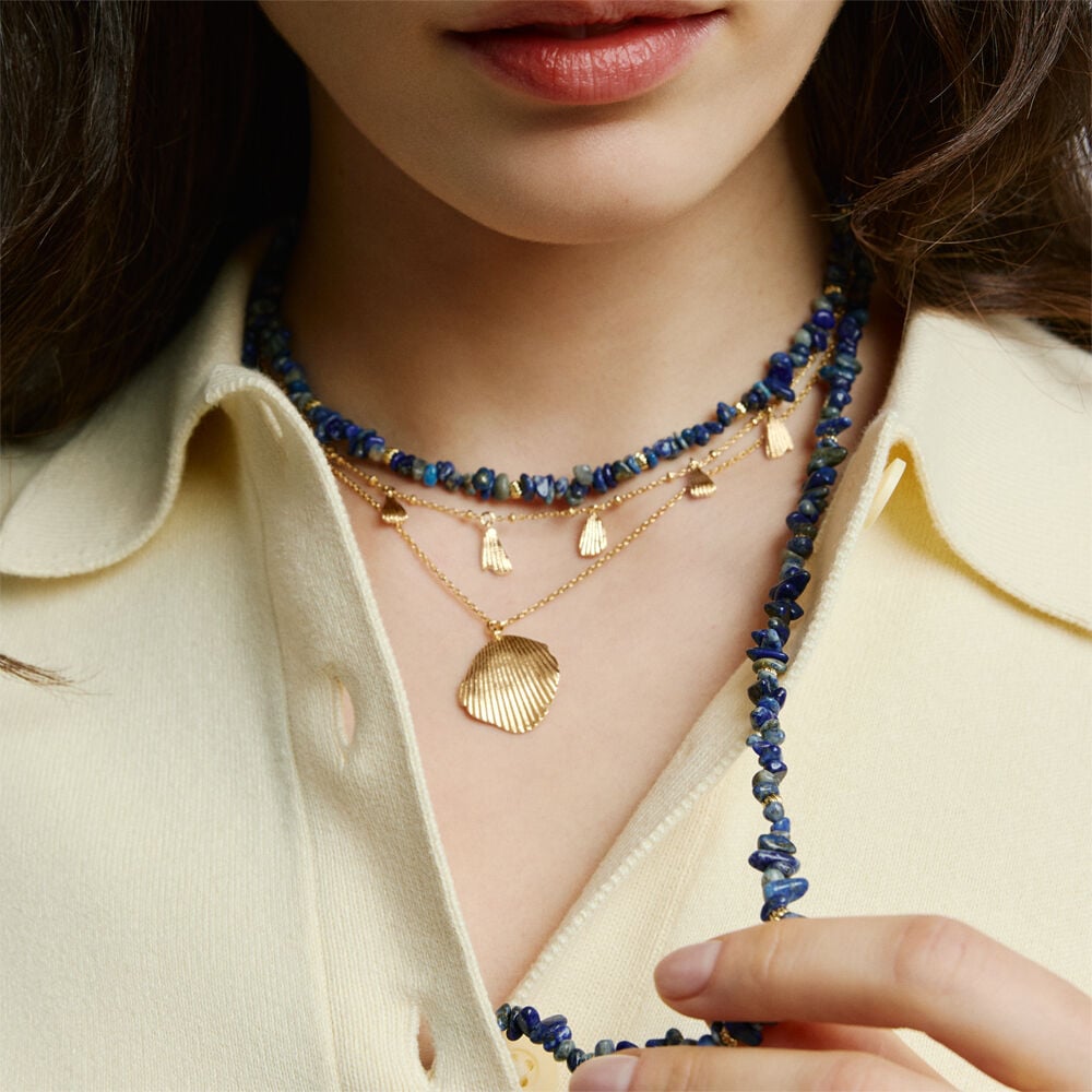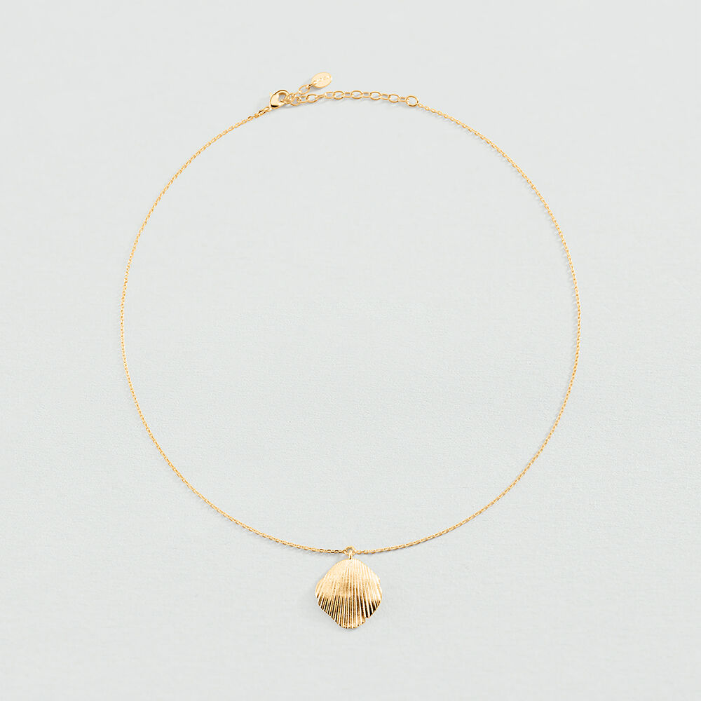 Collier de notre collection CASSIS, imaginé à Paris, réalisé en laiton doré à l'or 750/1000e - 18 carats. Ce bijou mesure 420 mm auquel s’ajoute une rallonge de 50 mm