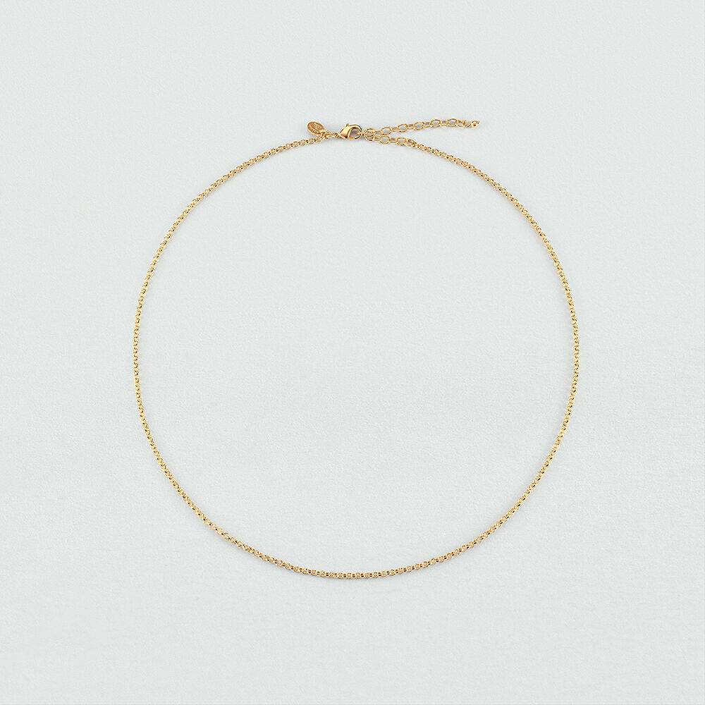 Collier de chaîne jaseron de 35cm en laiton doré à l'or 750/1000. Personnalisez votre bijou et changez-le au gré de vos envies en ajoutant à votre base chaîne un ou plusieurs pendentifs charms de notre collection Talismans. Ce bijou mesure 350mm et contient une rallonge de 50mm