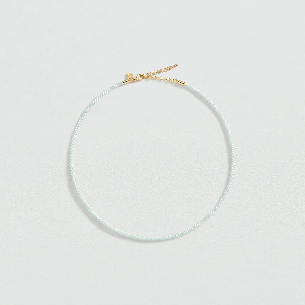 Collier corde colorée avec des embouts en laiton doré 750/1000. Personnalisez votre bijou et changez-le au gré de vos envies en ajoutant à votre base chaîne un ou plusieurs pendentifs charms de notre collection Talismans.