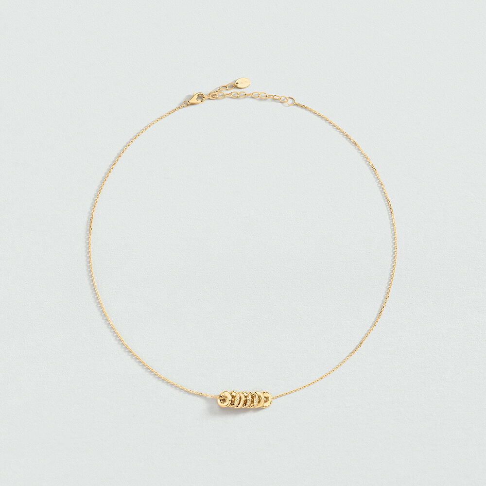 Ce collier de notre collection DAUPHINE, imaginé à Paris, est réalisé en argent 925 doré et orné d'oxydes de zirconium.Son design, rythmé par des variations organiques, lui insuffle un mouvement naturel et une fluidité harmonieuse. Ce bijou mesure 375mm et contient une rallonge de 50mm