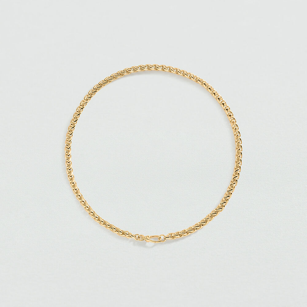 Collier en maille palmier doré à l'or 750/1000. Une chaîne de rallonge se mèle à la chaîne permettant de muti-portés ! Personnalisez votre bijou et changez-le au gré de vos envies en ajoutant à votre base chaîne un ou plusieurs pendentifs charms de notre collection Talismans. Ce bijou mesure 400 mm auquel s’ajoute une rallonge de 50 mm