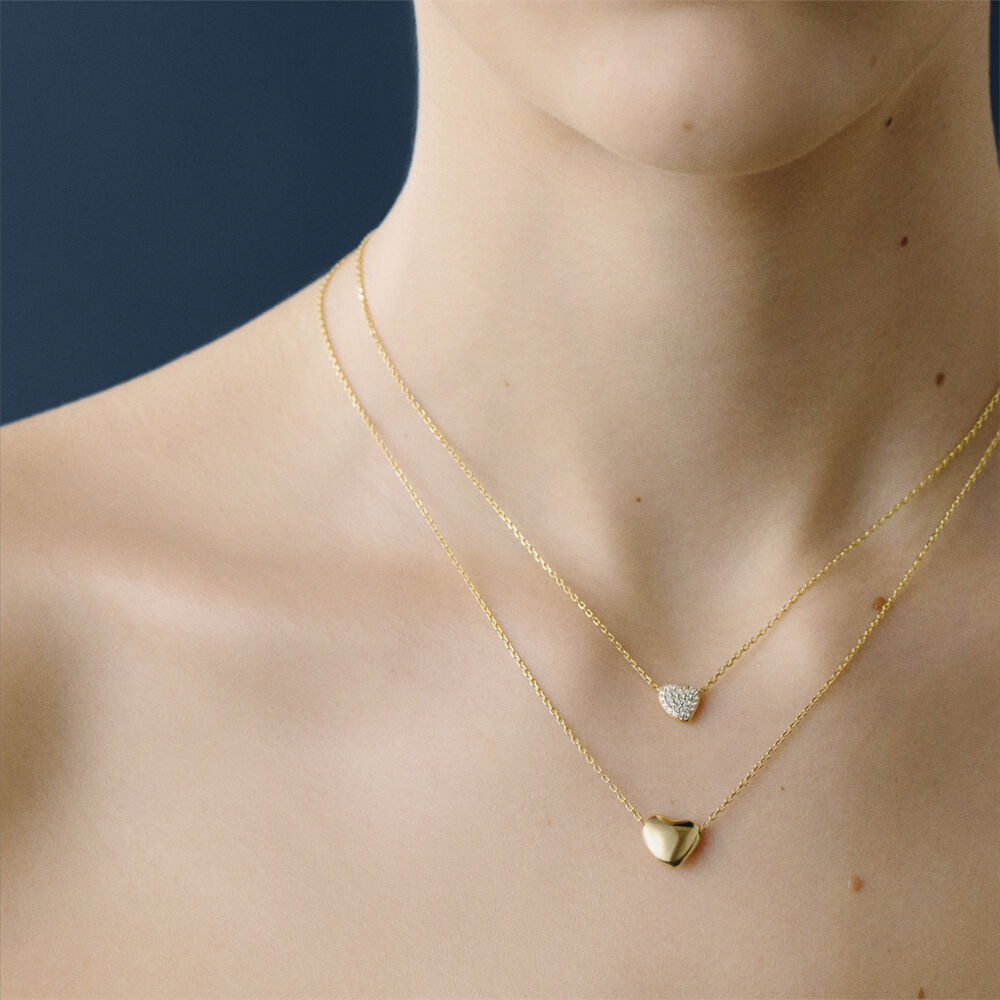 Collier cœur de notre collection MONTMARTRE, imaginé à Paris, réalisé en argent 925 doré à l’or 750/1000e - 18 carats. Un cœur réinterprété aux formes organiques et lignes graphiques, qui se glisse librement le long de la chaîne pour un style intemporel. Ce bijou mesure 400 mm auquel s’ajoute une rallonge de 50 mm