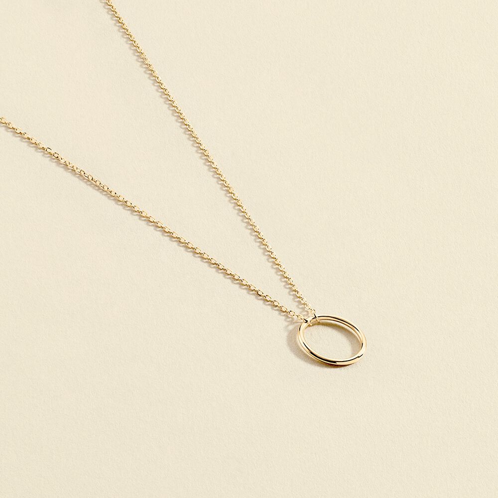 Collier court, en argent véritable doré 750/1000, avec un anneau évidé monté sur une chaine fine.