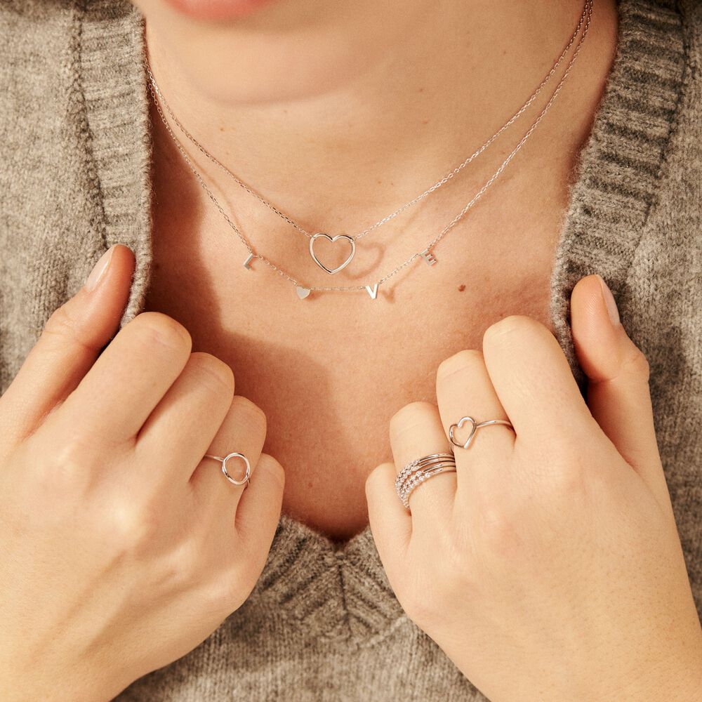Collier court, en argent 925/1000, mot LOVE dont le O est un coeur.