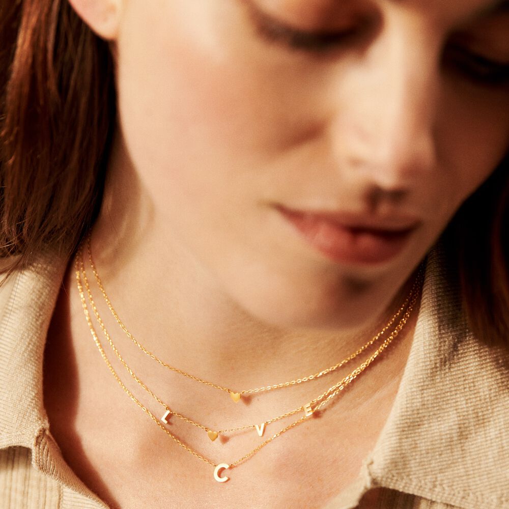 Collier court, en argent doré 750/1000, mot LOVE dont le O est un coeur.