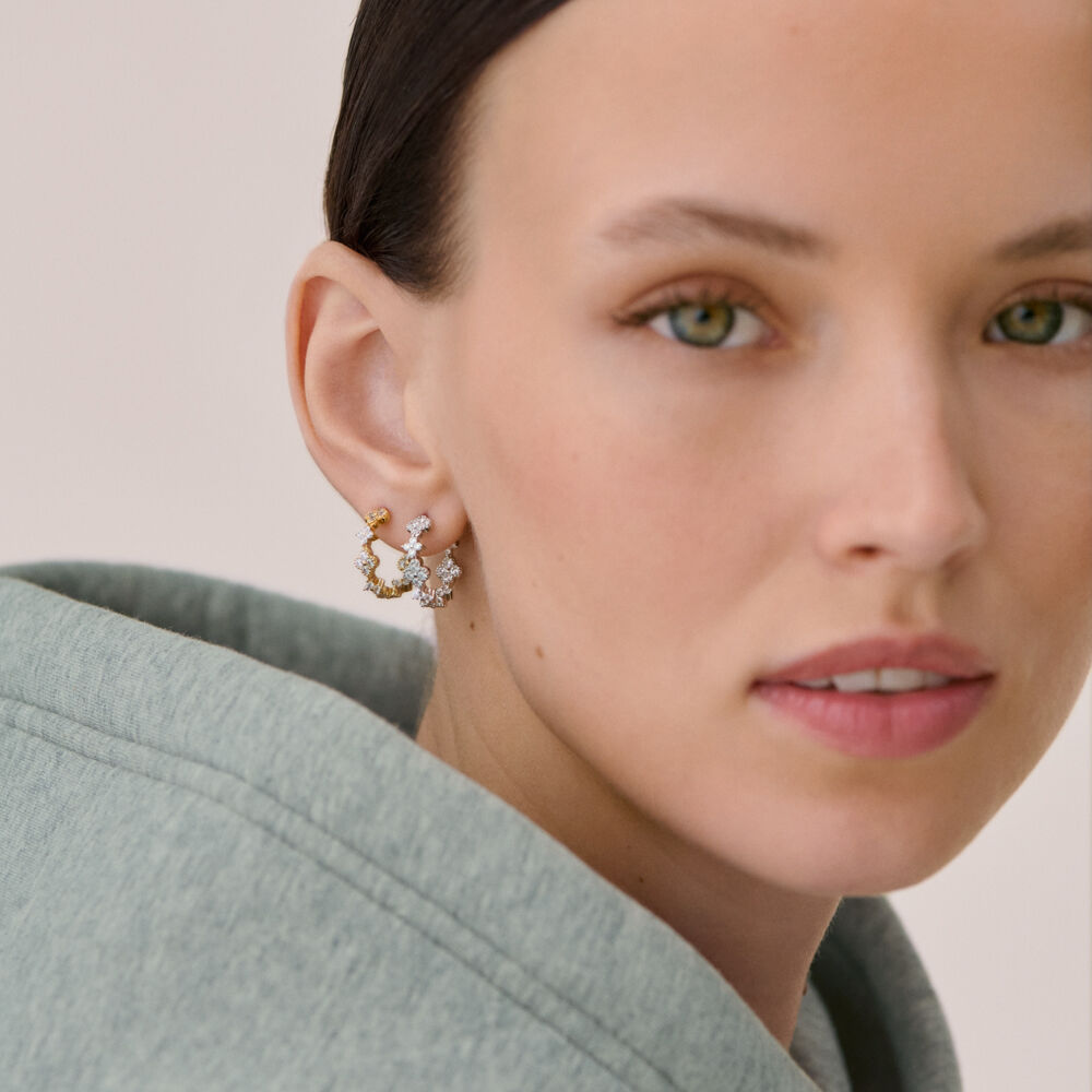 Créoles en argent 925/1000 doré à l'or 750/1000 faites de rangées de fleurs pavées d'oxydes de zirconium..