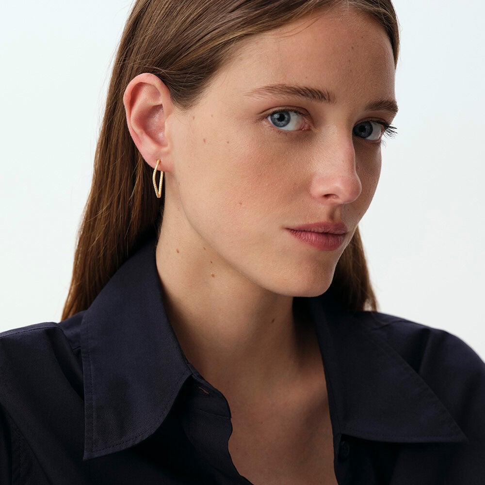 Ces boucles d'oreilles de notre collection DAUPHINE, imaginées à Paris, sont réalisées en argent 925 doré et ornées d'oxydes de zirconium.Son design, rythmé par des variations organiques, lui insuffle un mouvement naturel et une fluidité harmonieuse.