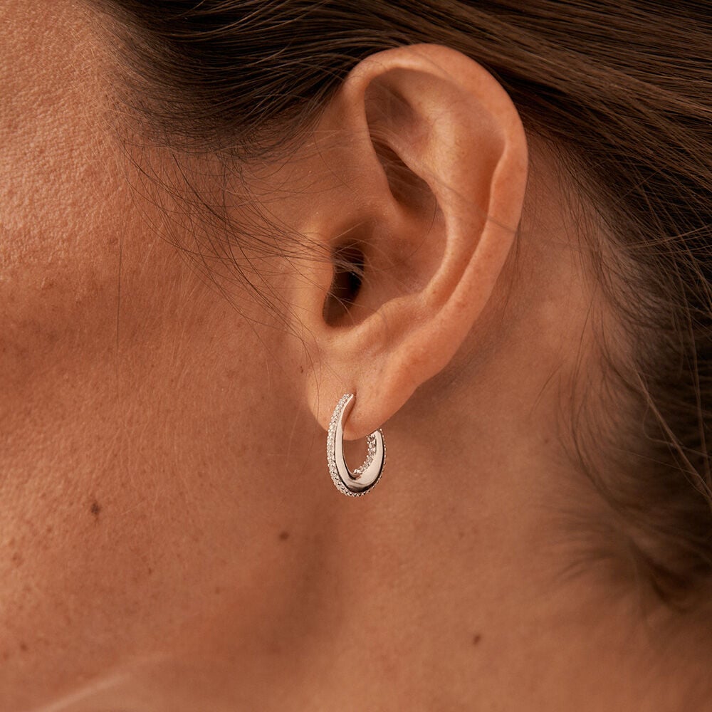 Créoles, petit modèle, en argent 925/1000, représentant une demi goutte et dont la tranche est sertie d'oxydes de zirconium.